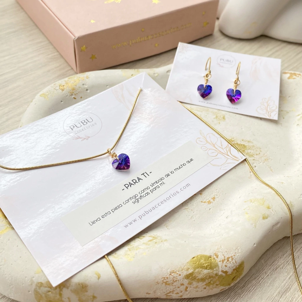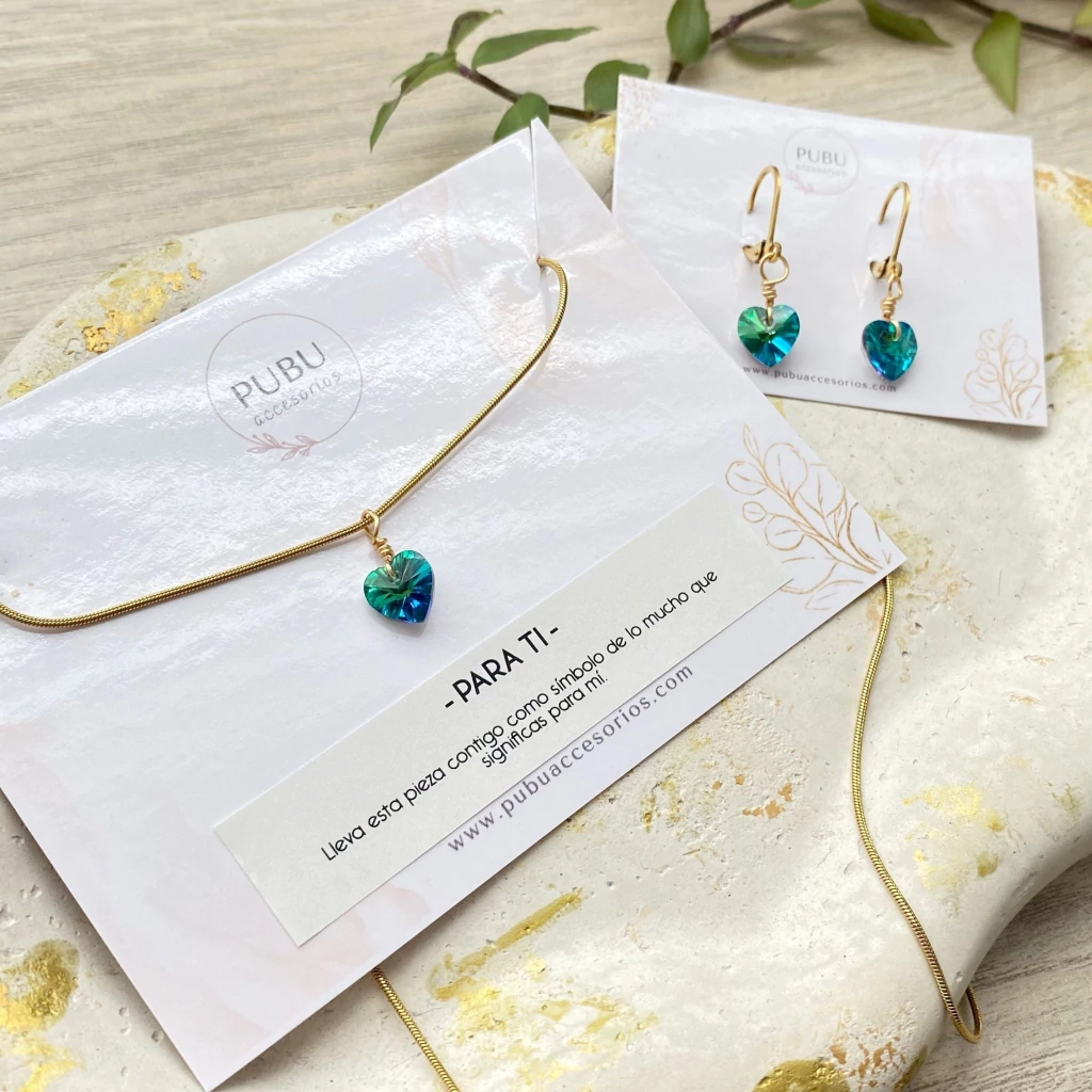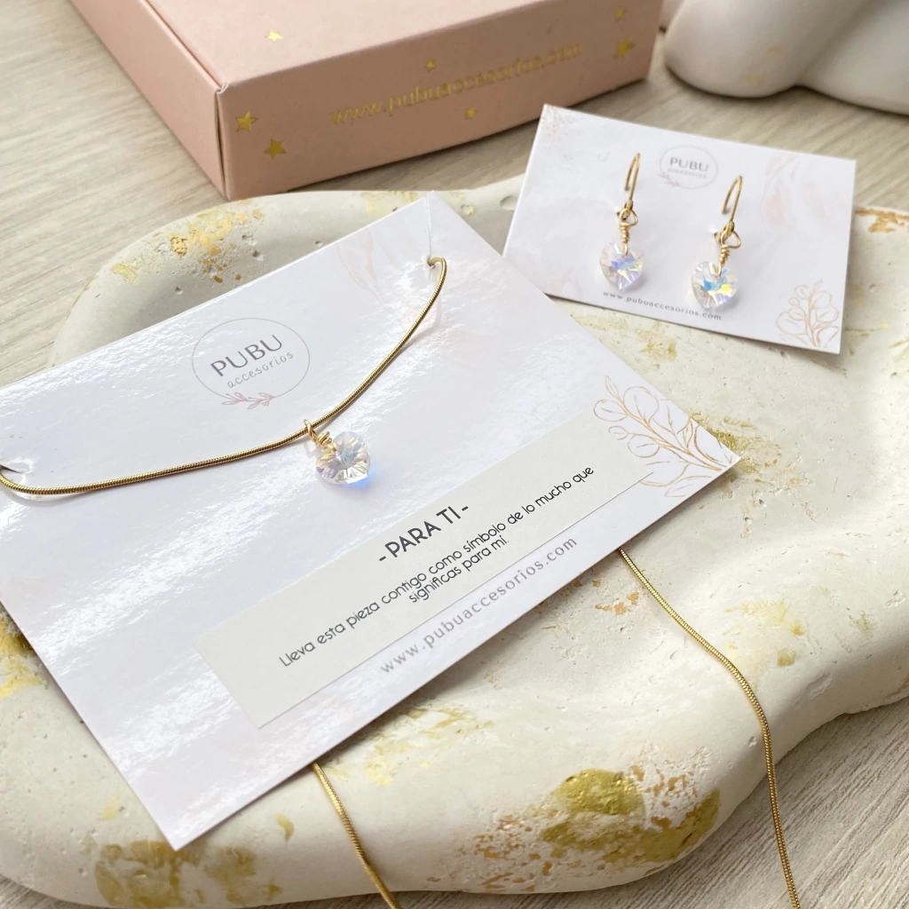 ✨ ¡Luce radiante con nuestro conjunto de cadena y aretes en acero inoxidable con deslumbrantes dijes en forma de corazón de cristal Swarovski! 💖 Este elegante conjunto combina la durabilidad del acero inoxidable con la belleza y el brillo característicos de los cristales Swarovski, asegurando un estilo que perdura en el tiempo. 🌟 Perfecto para añadir un toque de glamour a cualquier atuendo, ya sea casual o elegante. 💎 Haz que tu corazón brille con este deslumbrante conjunto. ✨ Incluye caja de regalo.